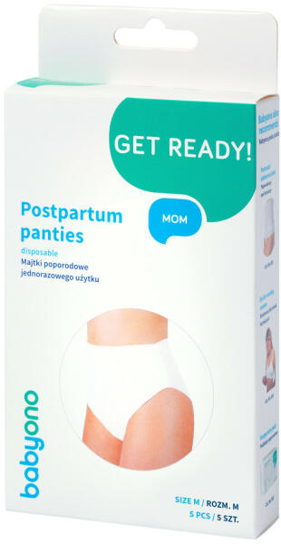 Az eldobható bugyikat elsősorban a szülés utáni időszakban lévő nők számára tervezték, amikor a megfelelő higiénia fenntartása rendkívül fontos. A bugyi kellemes anyagának köszönhetően szabadon szellőzik a test. A bugyi használata nem okoz irritációt, és a rugalmas gumiszalagok a derékban és az ágyékban nem nyomják a testet. Egyenként csomagolva. Három méretben kapható:M méret - csípőméret kb. 90 cm, L méret - csípőméret kb. 96 cm, XL méret - csípőméret kb. 104cm. Anyaga poliészter szülés után praktikus és higiénikus viselet. Kényelmes derékrésszel, 5 db/csomag